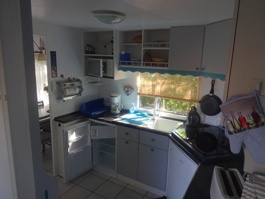 Das Bootshaus ist ein Mobil-Home, von uns komplett neu renoviert. Es gibt eine offene Küche neben einem kleinen Salon, 2 getrennte Schlafzimmer und ein Bad mit Dusche. Die überdachte Terrasse lädt ein, die Abende draußen zu verbringen. Der kleine Garten um das Mobil-Home ist eingezäunt und nur für Sie reserviert.